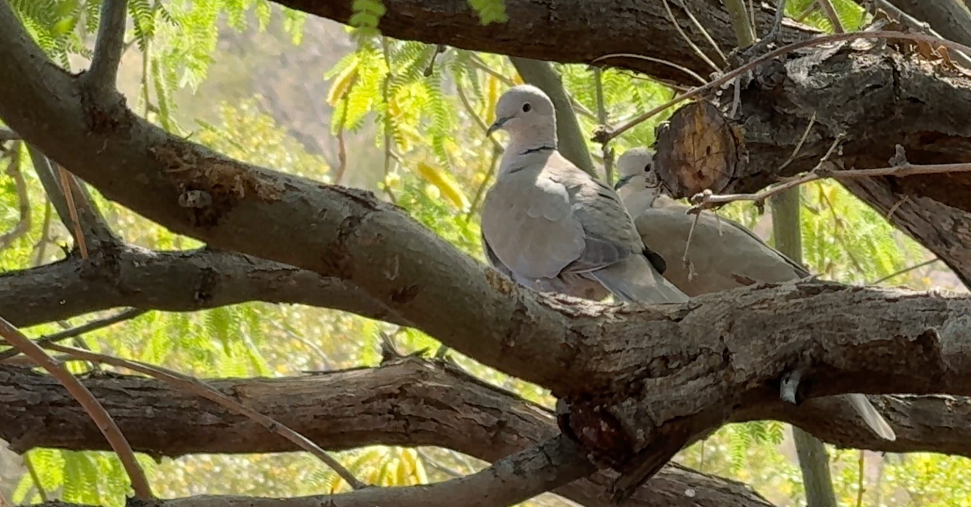 One afternoon, just as it threatened to meld into evening, we sat in the now spruced-up back yard to discuss dinner plans and enjoy the cooling air. In the tree just over the fence, two doves joined us in our respite (here’s a completely uneventful 23-second video of the doves.).