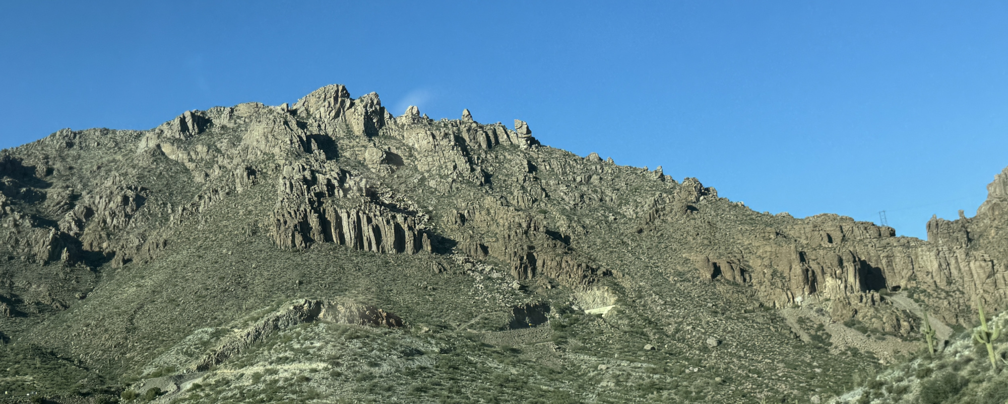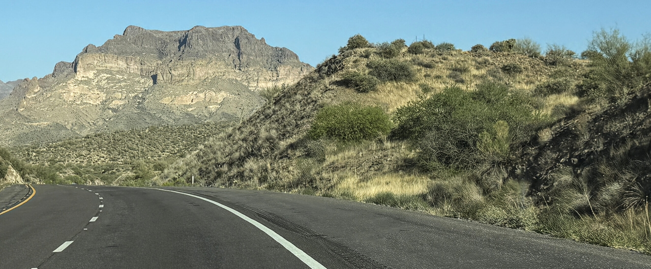 With all our work done, on the last day of my visit we got in the car and headed east toward the Tonto National Forest to take a scenic drive. We’d originally intended to bring her husband Charly’s ashes with us to spread somewhere in the desert, but Eileen decided at the last minute to leave them at home.