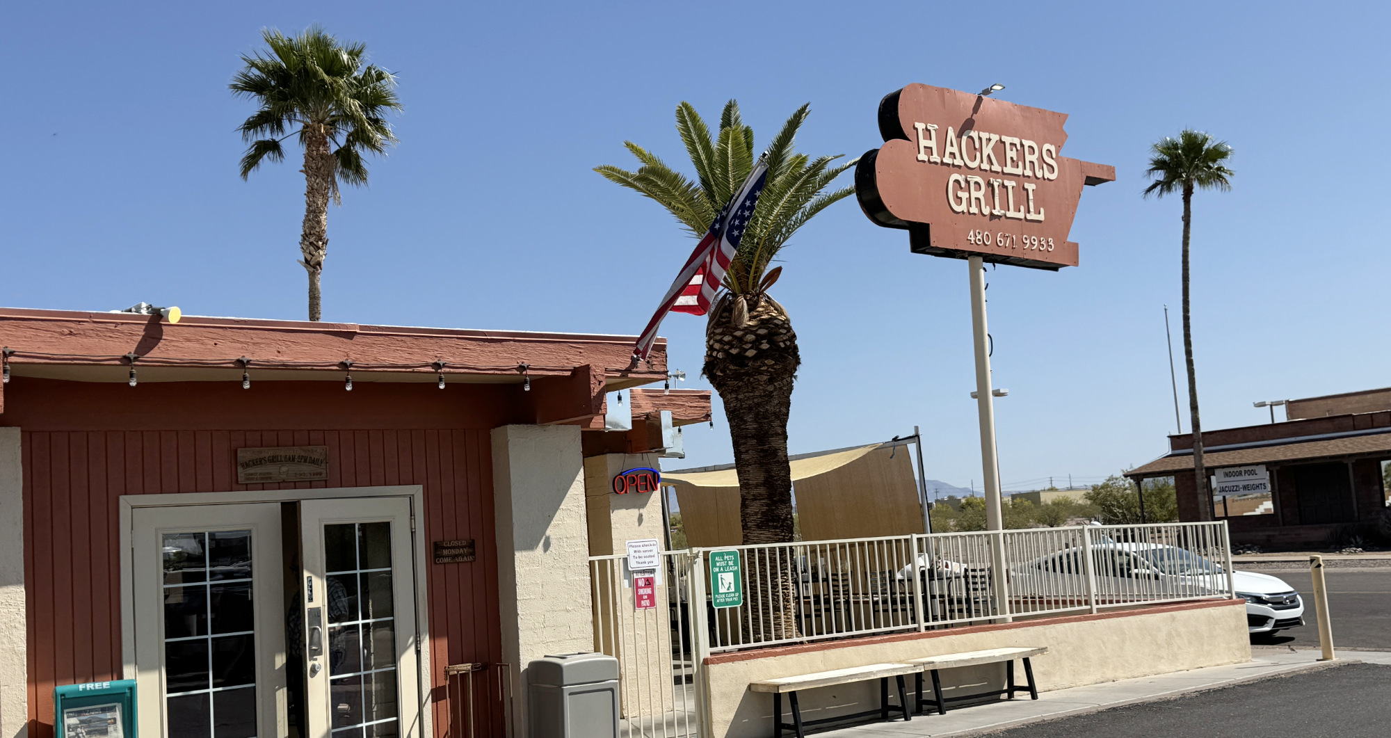 On my many visits to Apache Junction to see Eileen, we would usually go to the Hackers restaurant for breakfast or lunch. I always chuckled at the name, as I work in the tech industry and so a hacker is a pretty bad thing to avoid. This is not the most picturesque photo, I know—but it brings up many, many fond memories for me.