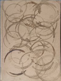 I saw a messed-up looking notebook on Eileen’s desk and asked if we should toss it. She said no, and explained that after she first got it, she accidentally set her coffee cup on it, leaving a ring. After a moment of deep disappointment, she spent a few minutes wetting her cup and carefully positioning more rings on the notebook to make quite the piece of art. I’m so glad I took a picture of it!
