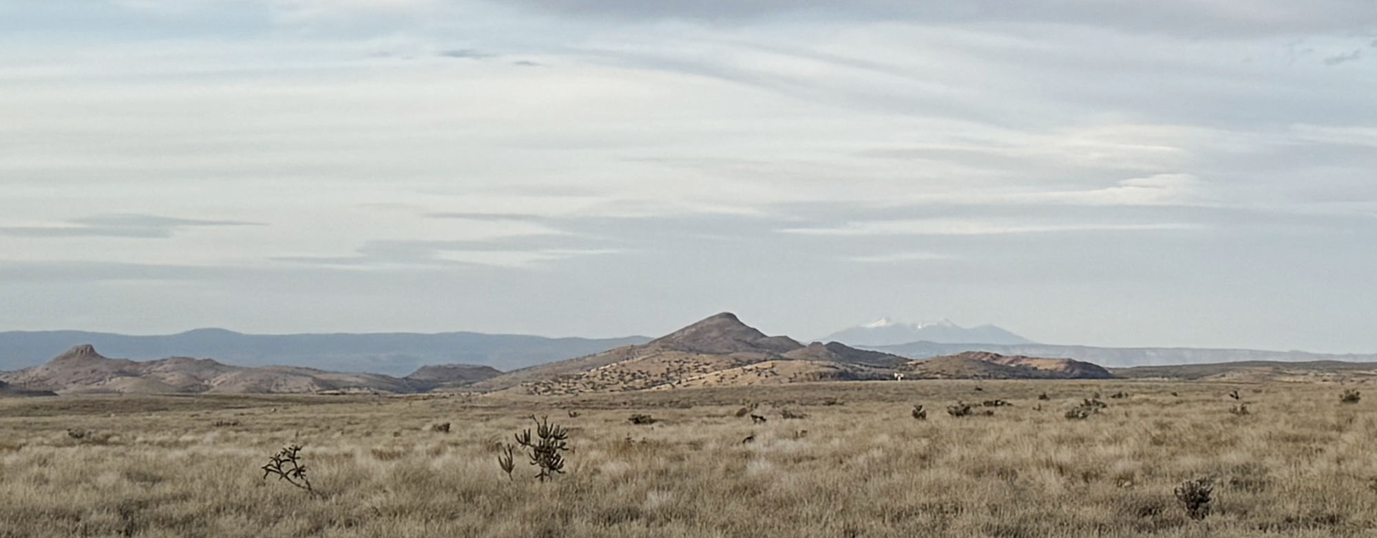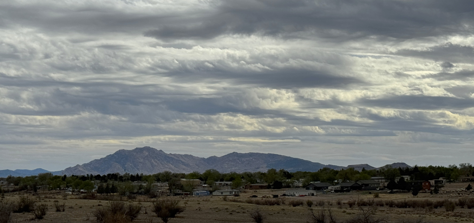 In this next photo, taken in the valley east of Chino Valley, you can just barely see the snow-capped San Francisco peaks, about 85 miles away in north central Arizona.