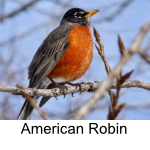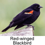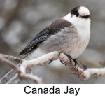 Two other birds that we’ve only seen a few times are the Canada Jay (below on the left) and the Red Winged Blackbird.