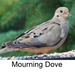 We also see brown-headed cow birds from time to time (shown below foraging in the [wow-this-needs-to-be-mowed!] grass below our bird feeder with a mourning dove). Here’s the story behind their unusual name.